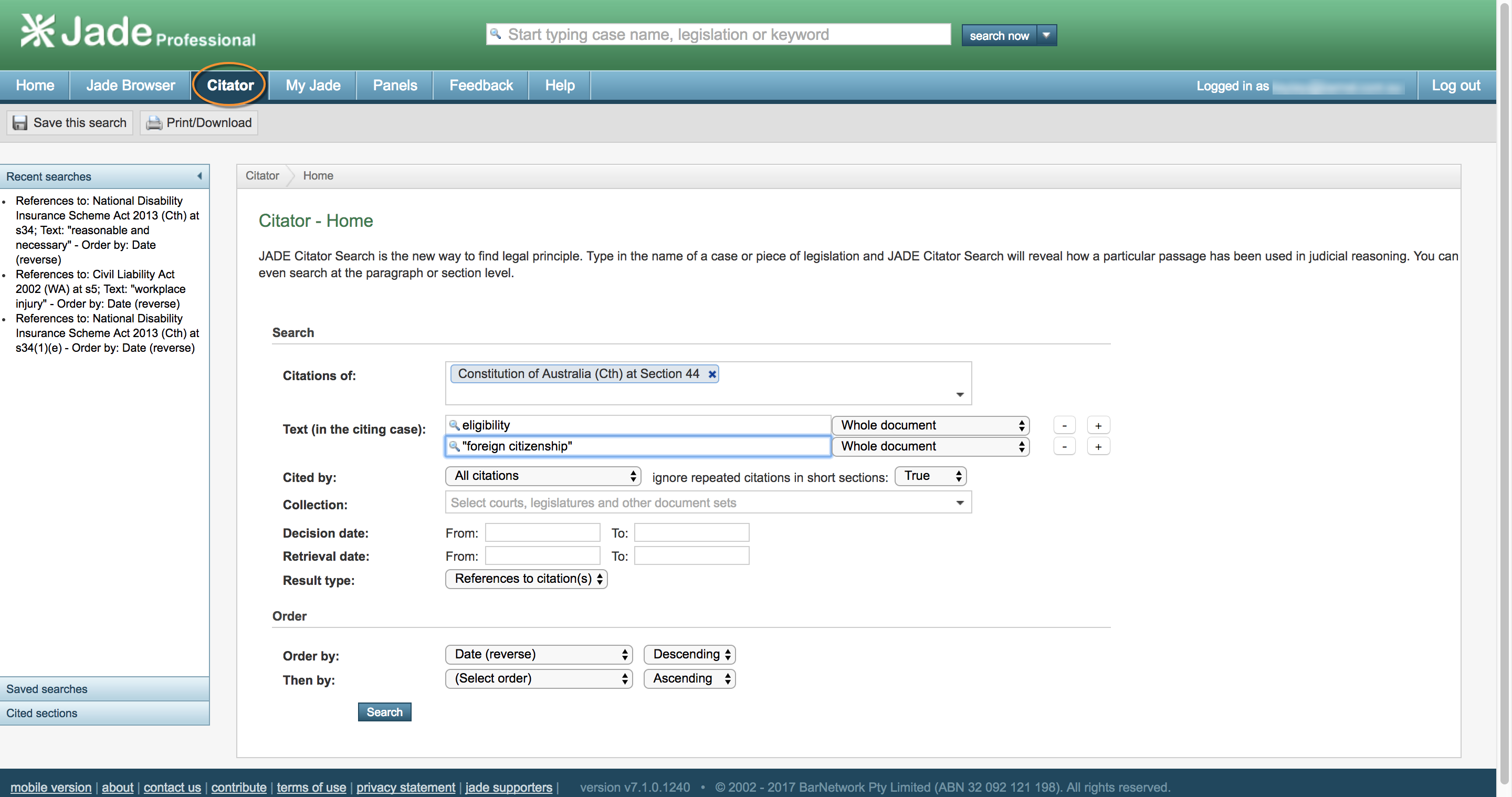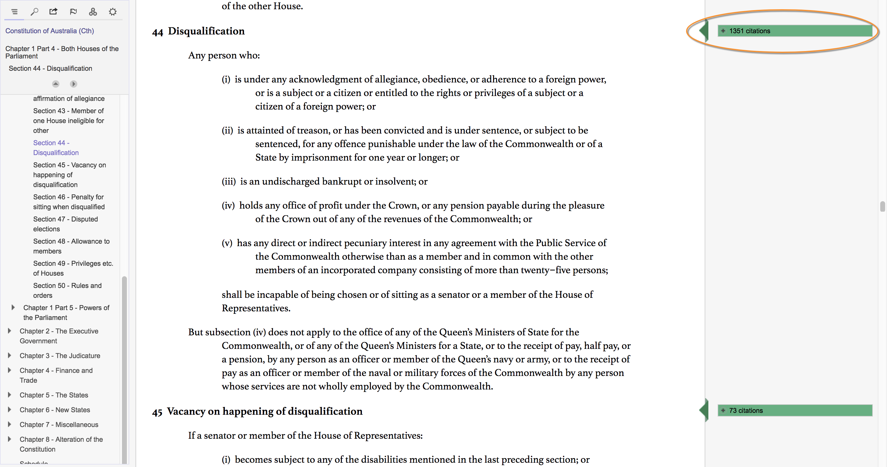 Step 3: use our Citator tool to see how words and phrases like “eligibility”, “dual citizen”, “foreign citizenship” and “disqualified” have been used in judicial reasoning in the context of section 44.