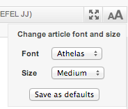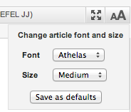 Fonts. Easily change the fonts and font size on JADE. Hide. If you want to hide the left hand side contents box and the right hand side citations click the arrows to make them dissapear.