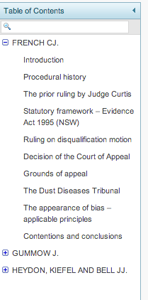 Save time scrolling and quickly access the judgement or part of judgement you want using JADE’s contents box.